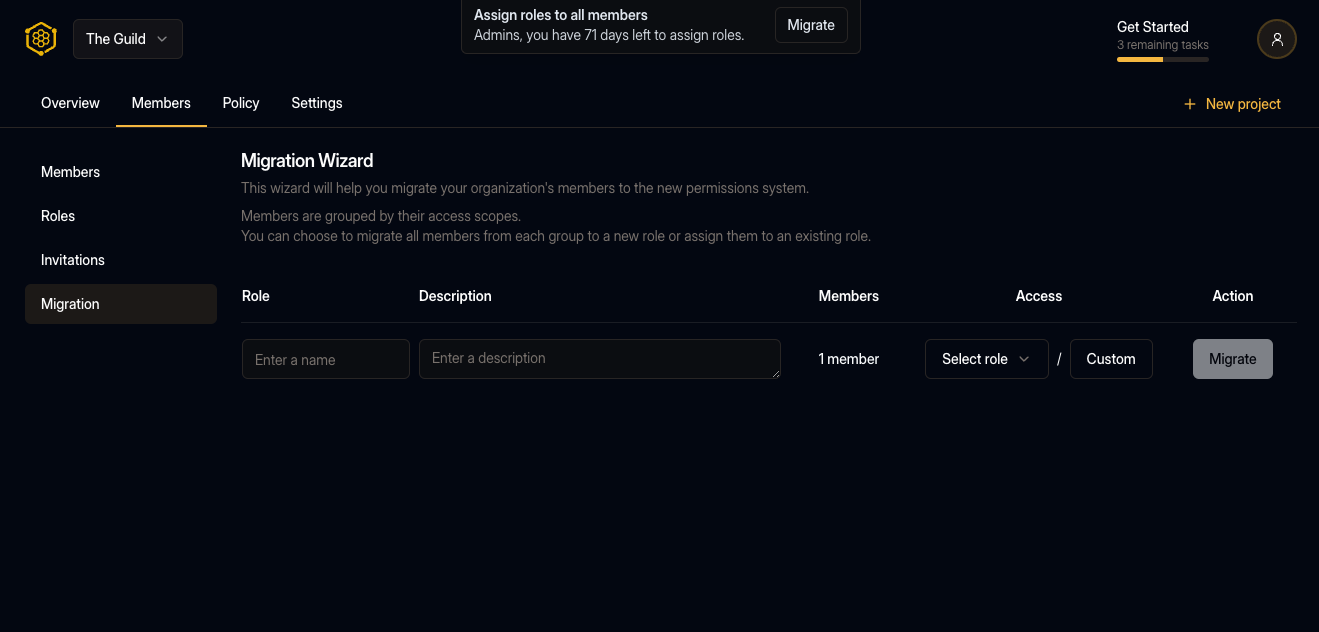 The Migration Wizard will remain available for the next 60 days. Following this period, members who do not have a designated role will be automatically assigned to a custom-created role that aligns with their permissions.