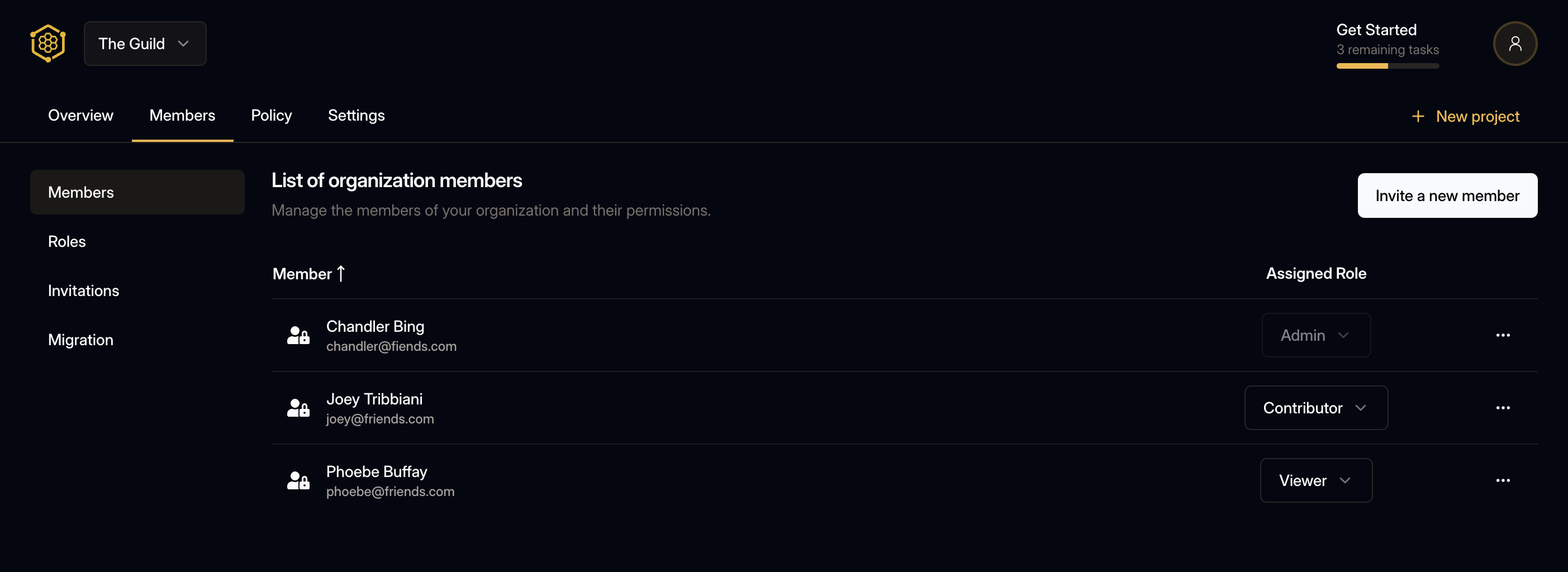 Users with access to the organization members page can create custom roles. As Admin and Viewer roles are not enough to cover all possible scenarios, custom roles allow you to create a role that fits your team perfectly.